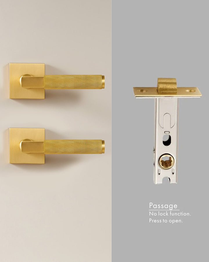 Creatively designed with a textured, knurled finish, the handles impart a refined touch to any door. They come in three distinctive hues – sophisticated black-gold, regal gold, and a tasteful brushed brass - making them adaptable to all decor themes. Whether your home oozes with contemporary chic or pays a humble homage to traditional aesthetics, these door handles will effortlessly augment the overall visual appeal.